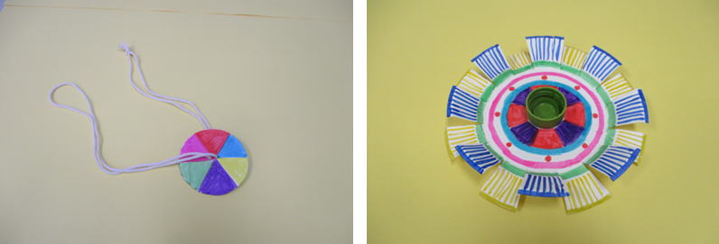| 2種類のコマが楽しめます。色を塗って回してみよう! |