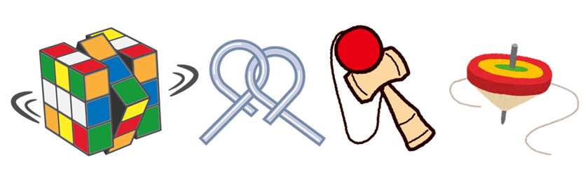 | ルービックキューブや知恵の輪(一人用のおもちゃ)を貸出ししています。 |